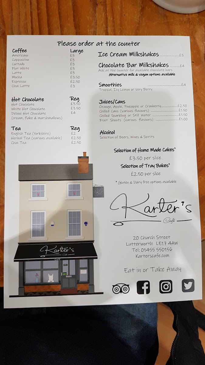 Welcome to Karter’s Café, where culinary satisfaction meets comfort in Lutterworth. Nestled on 20 Church St, this café stands out as an inviting alternative to generic service station fare, as highlighted by satisfied patrons like Thomas Fenton, who praised its relaxed atmosphere.